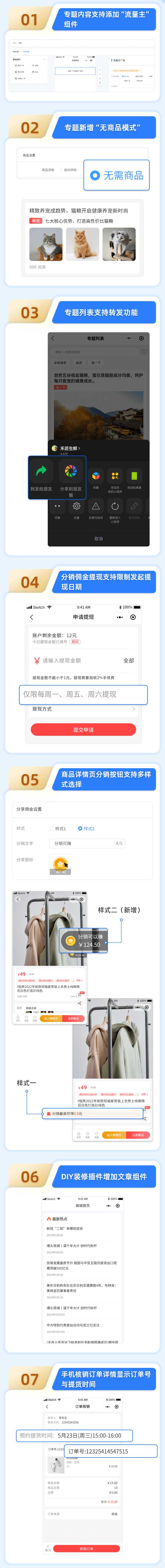 坚守为创业者服务之初心,虹鑫科技持续8年稳定迭代,始终在不断完善的路上,致力于为您提供功能更全面的商城系统! 本期,基于用户的反馈,虹鑫科技商城系统进行了8项更新,具体内容如下(已购虹鑫科技商城系统的用户在总后台点击更新即可免费获得新功能): 更新汇总 新增:专题增加流量主组件; 新增:专题增加无商品模式; 新增:分销增加发起提现日期限制; 新增:DIY增加文章组件; 新增:商品详情分销按钮增加样式选择; 优化:专题列表支持转发功能; 优化:手机核销订单详情显示订单号跟提货时间; 优化:收银台支付成功之后自动跳转到首页。 试读已结束,请付费阅读全文。 ¥ 0.20 付费阅读    |